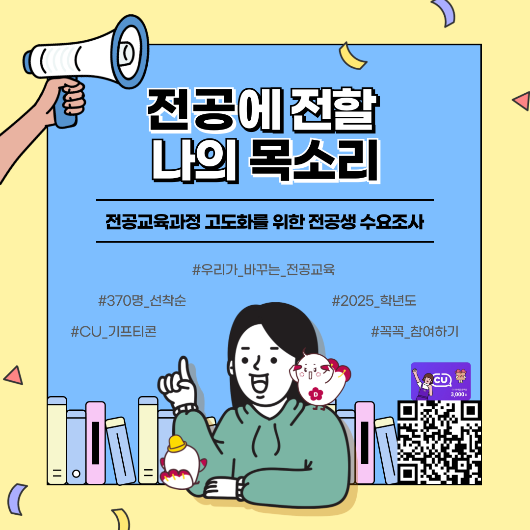 • 2025학년도 「전공 교육과정 고도화를 위한 재학생 수요조사」 참여 안내(~10/15)