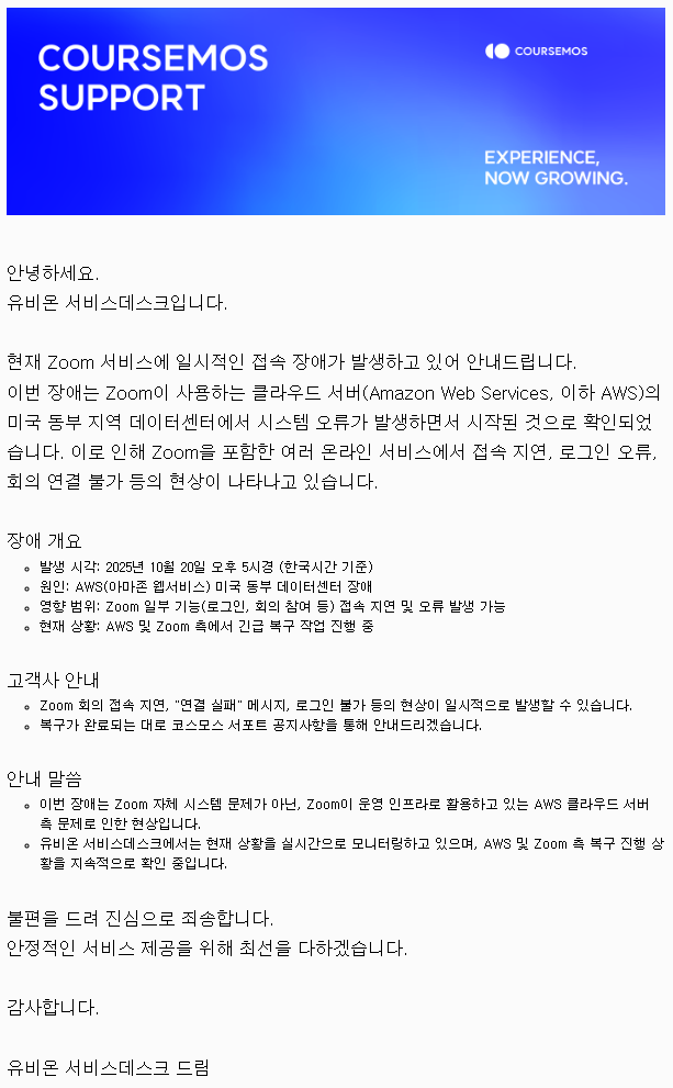 Zoom 서비스 접속 장애 안내